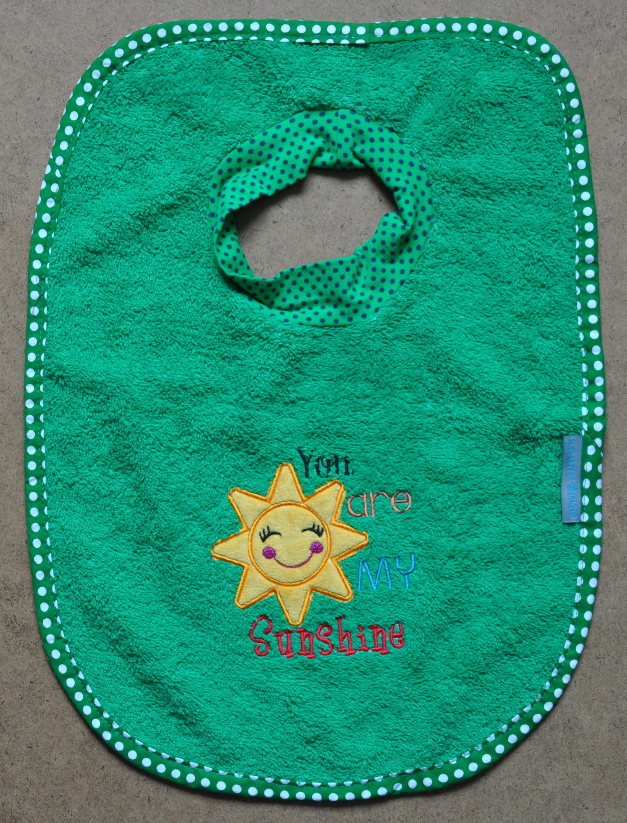 | Frottee Lätzchen ohne Ärmel bestickt mit diversen Farben und Motiv | |